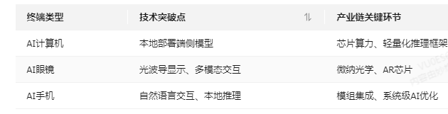技术突破:推动消费终端企业与AI企业合作开发端侧模型,实现云端模型向终端的轻量化部署