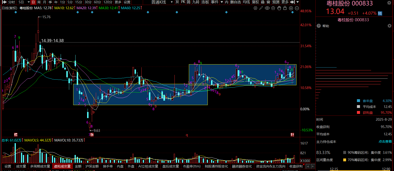 粤桂股份(000833)作为集制糖、硫化工、新能源材料于一体的多元化企业,近期在传统业务提质增效与新兴产业突破上展现出较强竞争力。当前处于“低估值+高壁垒+强催化”的价值洼地,目前行情下处于慢牛行情,此类低估值、业绩优、价值洼地股已受到大部分主力的建仓、关注,是主力做高低切换标的,底部筹码大部分很难拿到(除非大行情走坏),但就目前的股价来说还是处于较低位置,安全边际充足。不久股价有望冲击18元目标位。