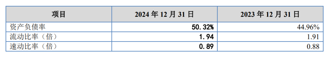 报告期内,公司资产负债率为44.96%,50.32%,流动比率和速动比率在合理范围内。