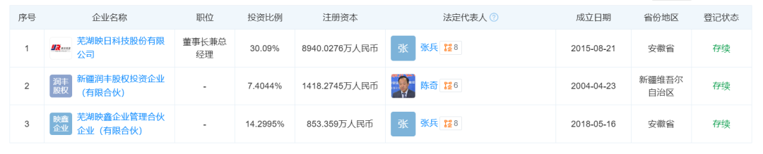 公司实控人为张兵,名下3家公司,其他两家均为持股平台