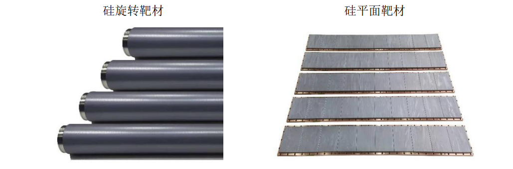 硅靶材属于非金属单质靶材,采用热喷涂技术工艺,主要用于制备保护膜层,如在触控屏中起到增加玻璃与 ITO 膜的附着力和平整性、表面钝化和保护等作用。在平面显示中的触控屏、导电玻璃、盖板等领域中得到广泛应用。具体产品图示如下: