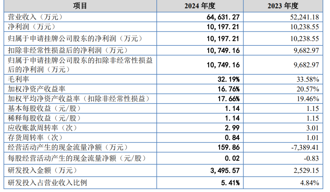 报告期内,公司营业收入为5.22亿,6.46亿,扣非归母净利润为9682万,10749万元。