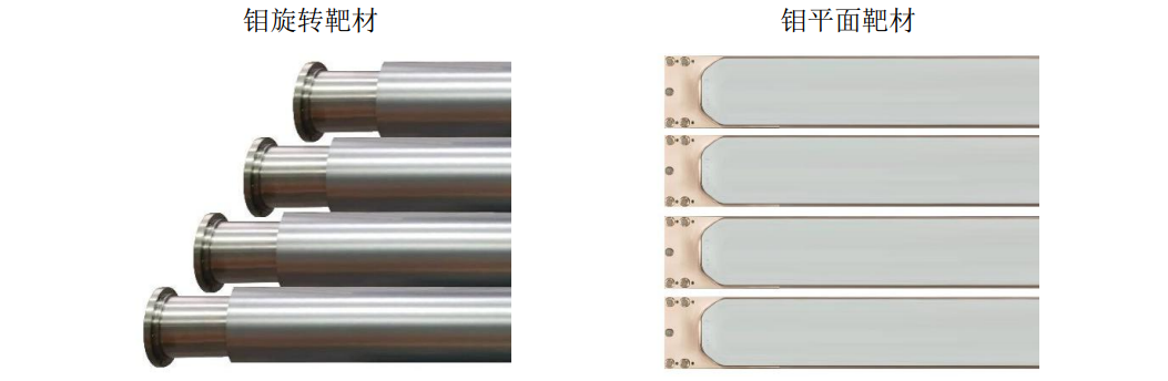 钼靶材属于金属单质靶材的一种,主要应用于平面显示、太阳能电池等领域,用于制备 TFT 阵列阻挡层、触控屏电极和导线阻挡层,相对于铬在环境保护方面更为友好,且其比抗阻和膜应力仅为铬的 50%,性能更优良。目前公司的钼靶材主要应用于平面显示领域。