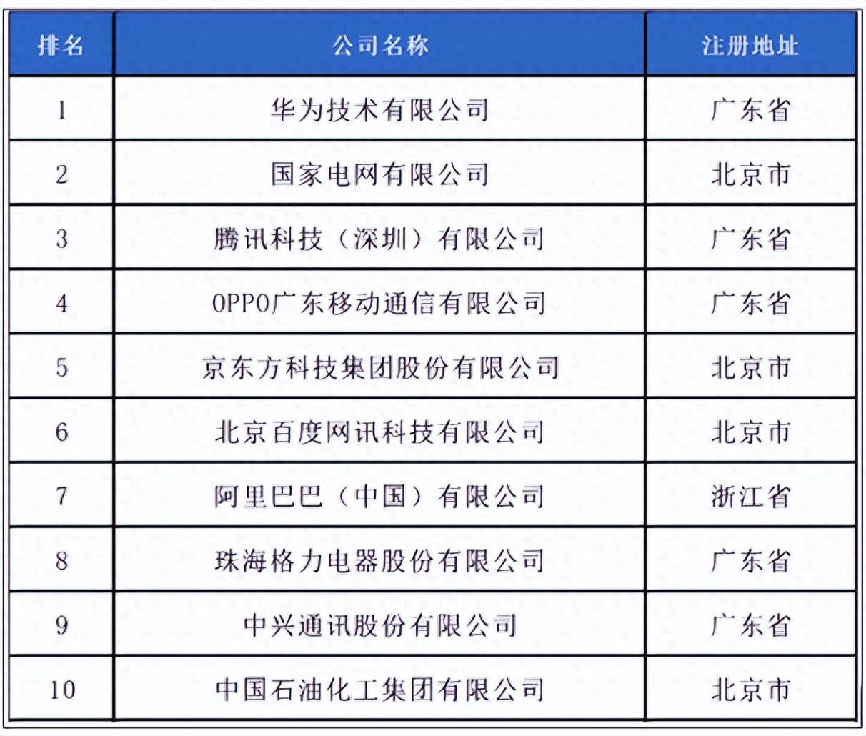 下图是专利排名,华为与国家电网及OPPO都没有上市,腾讯在港交所上市。