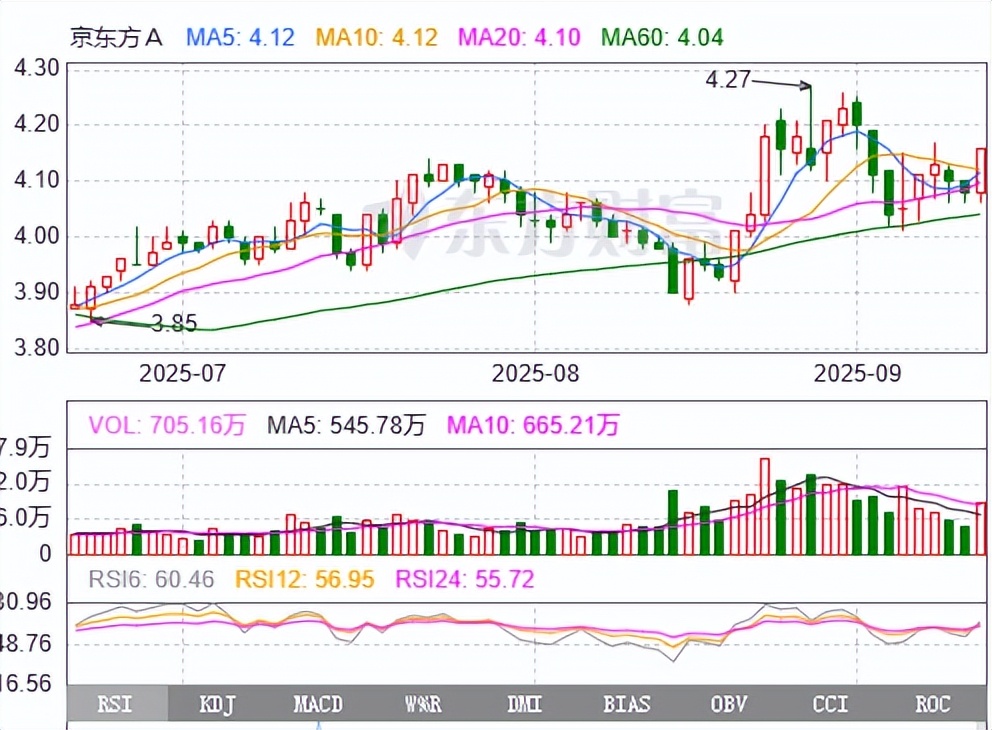 从图上看,京东方的价格还在大盘3300点在位置,作为科技头部公司, 最近明显拖后腿了,当然在牛市中, 好股票早晚会涨,只是先涨与后涨的问题。