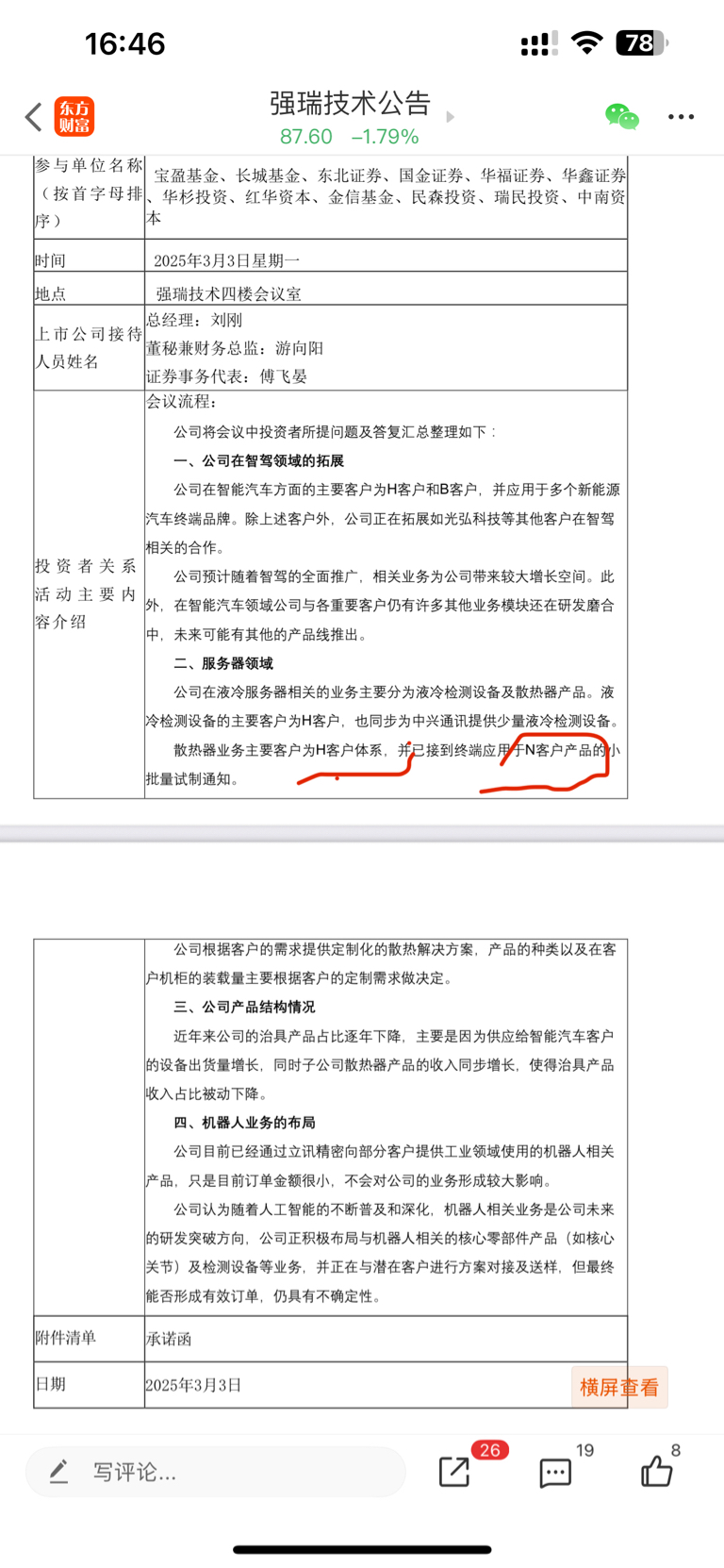 三月调研已经小批量了,北美N客户,不是达子还能是谁要散热?