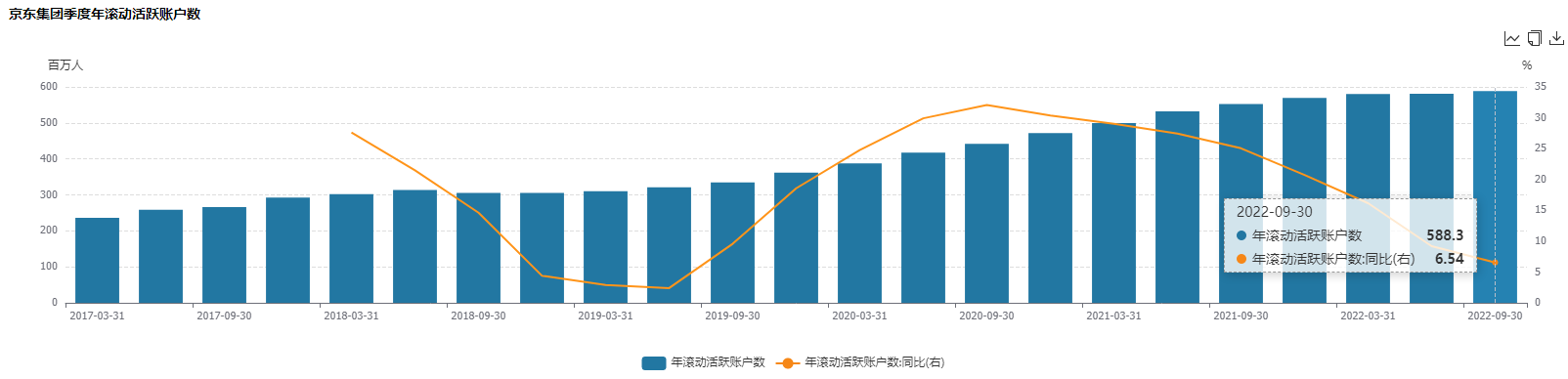 京东2025年二季度财报显示,因核心零售业务和外卖等新业务的发展,其季度活跃用户数和购物频次都同比涨超40%。