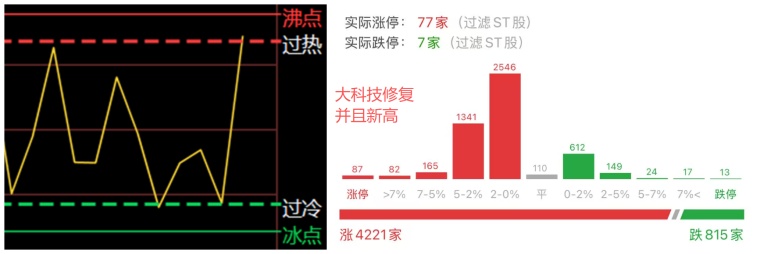 市场情绪:一反弹就过热,涨跌中位数+1.25%。板块题材:半导体芯片掀起涨停潮,渣男不再渣,代表了什么?