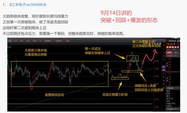 小困9月14号帖子,写了突破大区间箱体+回踩起爆的几只。