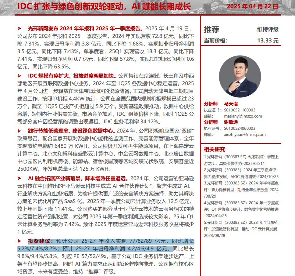机构预测显示,光环新网的业绩爆发将呈现清晰的阶段性特征。2025年第三季度,随着天津宝坻项目满负荷运行和AI算力订单集中释放,公司预计将迎来首个业绩拐点。