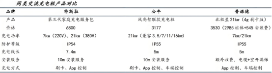在产品竞争力方面,公牛主打性价比,以公司风尚智联款从充电桩为例,它的价格仅为3177元,还不到特斯拉第三代家庭充电服务包的一半,但其充电方式、防护等级都比特斯拉更好。