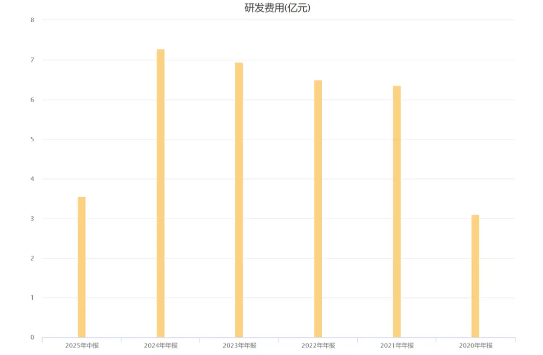 在2021年之前,也就是做丝杠之前,恒立液压每年的研发费用只有两三个亿,现在每年都是7个亿左右,而且还在逐年增长,现在的研发费用率接近8%。