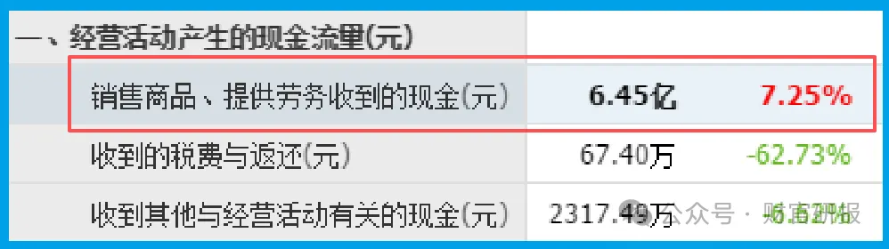 更重要的是,公司销售商品、提供劳务收到的现金达到6.45亿元,不仅同比增长7%,还超过了营业收入。