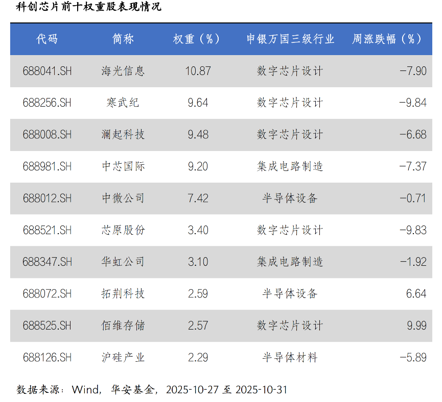 过去一周科创板整体回调,芯片板块回调幅度较大。