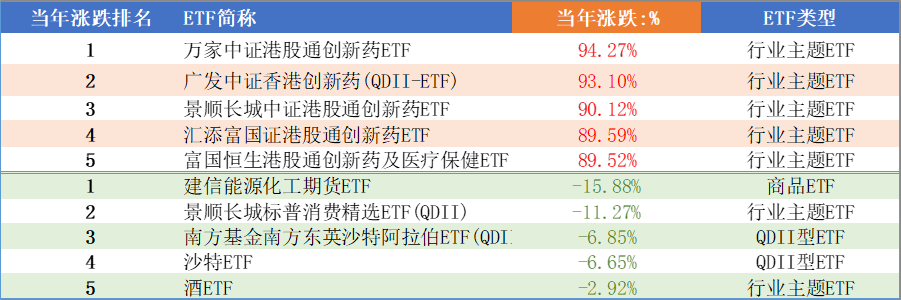年度涨跌幅榜单上,创新药类ETF又霸榜了,其他的周期类ETF纷纷退出。