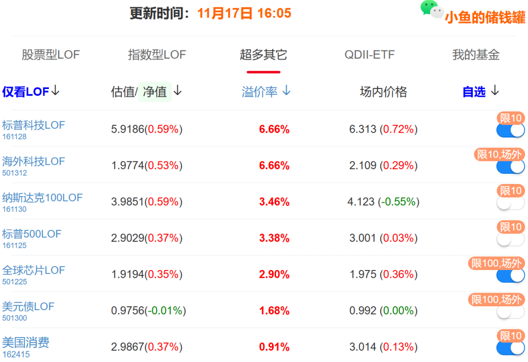 不嫌弃的还可以继续,上图标了“场外”的海外科技LOF,全球芯片LOF,美元债LOF,都是只能通过场外申购然后转场内卖出。