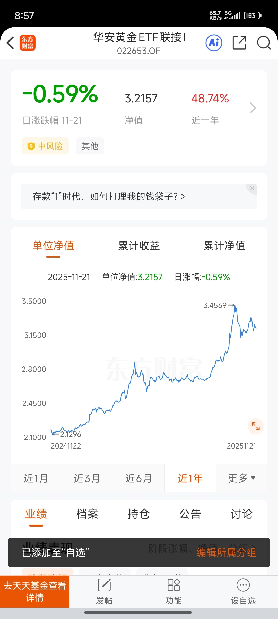 一年,不过是历史长河中的一瞬。但对于我与华安黄金I份额而言,却是365个日夜的相伴与信任。它让我明白,真正的“金”打细算,不是斤斤计较于短期的涨跌,而是用智慧的眼光,选择低成本、高效率的工具,进行长周期的价值布局。