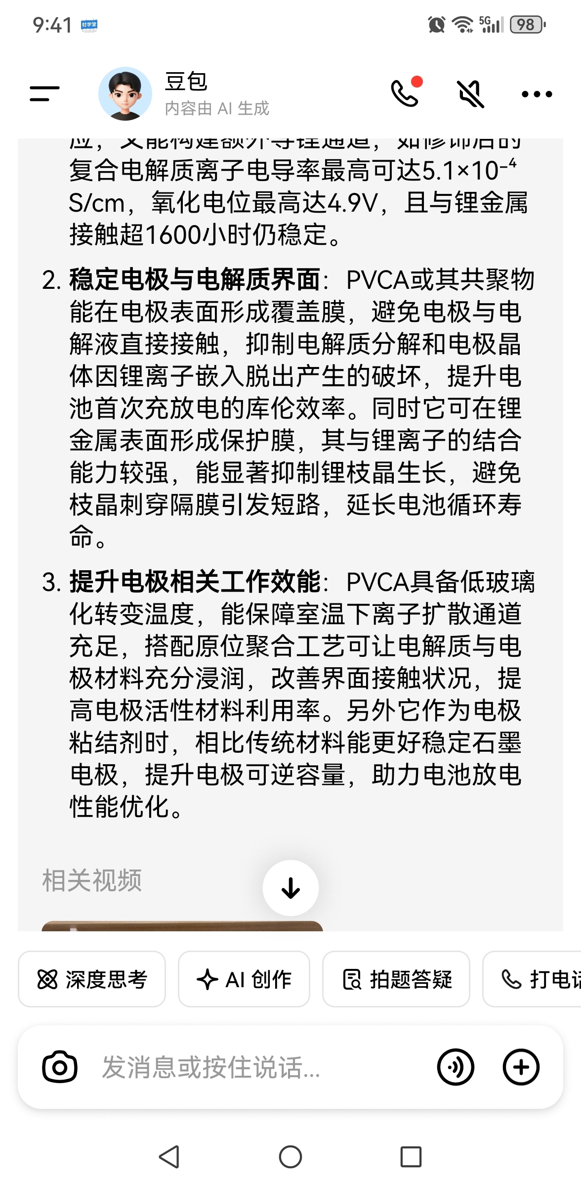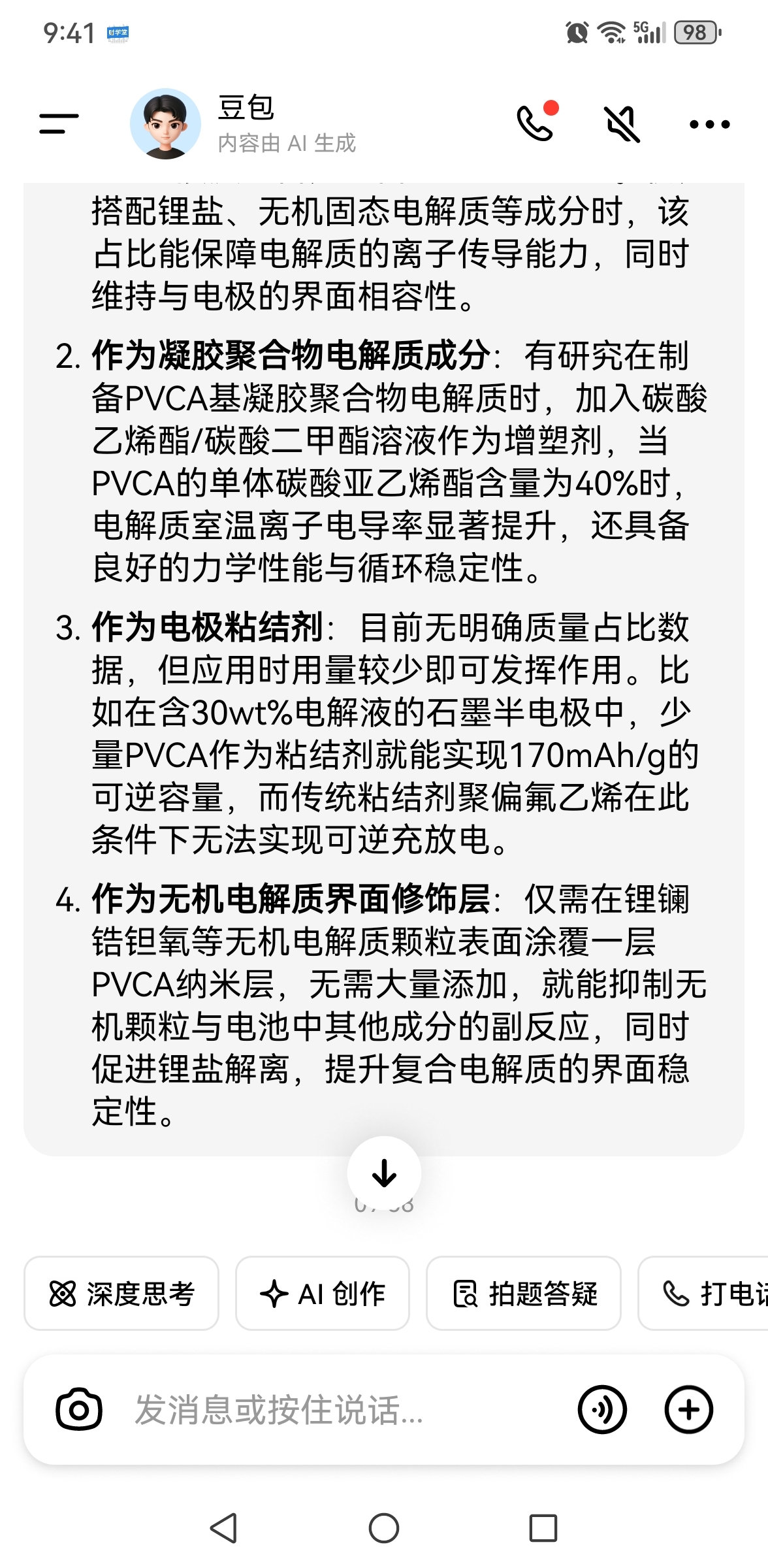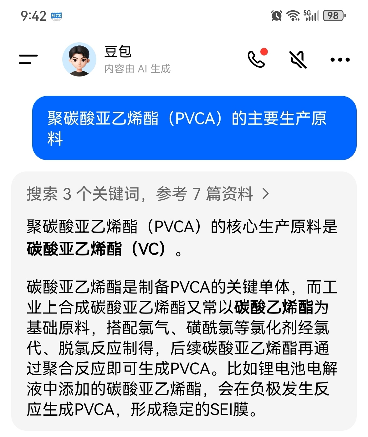 $富祥药业(SZ300497)$ 固态电池是动力电池的新发展方向,而碳酸亚乙烯酯(VC)也是固态电池中固质电解质生产所需的原料,即固态电池中需要用到由VC为原料生产的聚碳酸亚乙烯酯(PVCA),使用量还不低,相关信息见如下转引豆包Al的信息内容,可期待VC的需求量将随着固态电池生产线的投入扩大而有较大的增长。