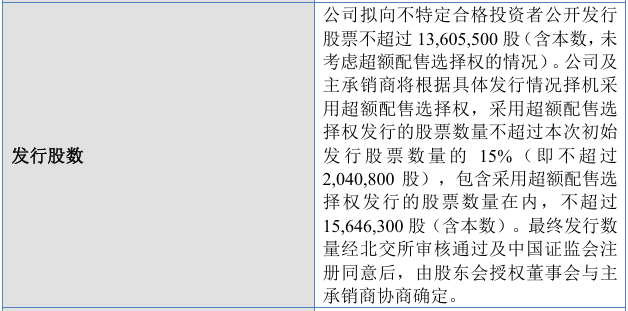 2. 发行方案:公司发行前总股本4081.6327万股,拟发行1360.5500万股(不包含超额配售),发行后总股本5442.1827万股(不包括超额配售)。拟募集资金31391.62万元,拟发行价23.08元。