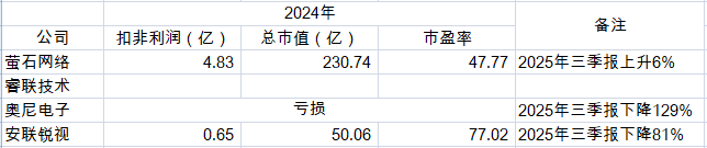 5. 可比公司有萤石网络、睿联技术、奥尼电子和安联锐视,业绩差异比较大。