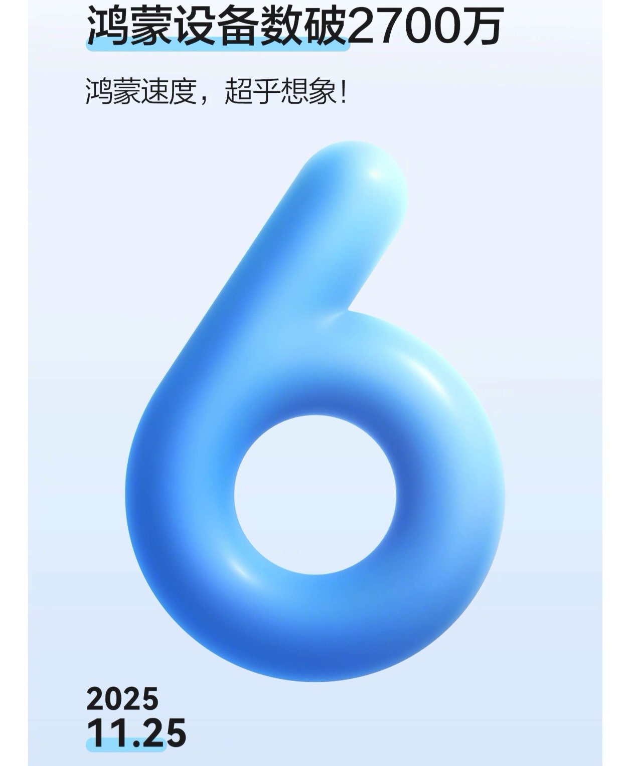 鸿蒙原生装机量:9月22日才1700万台,两个月过去后,11月25日超过了2700万台