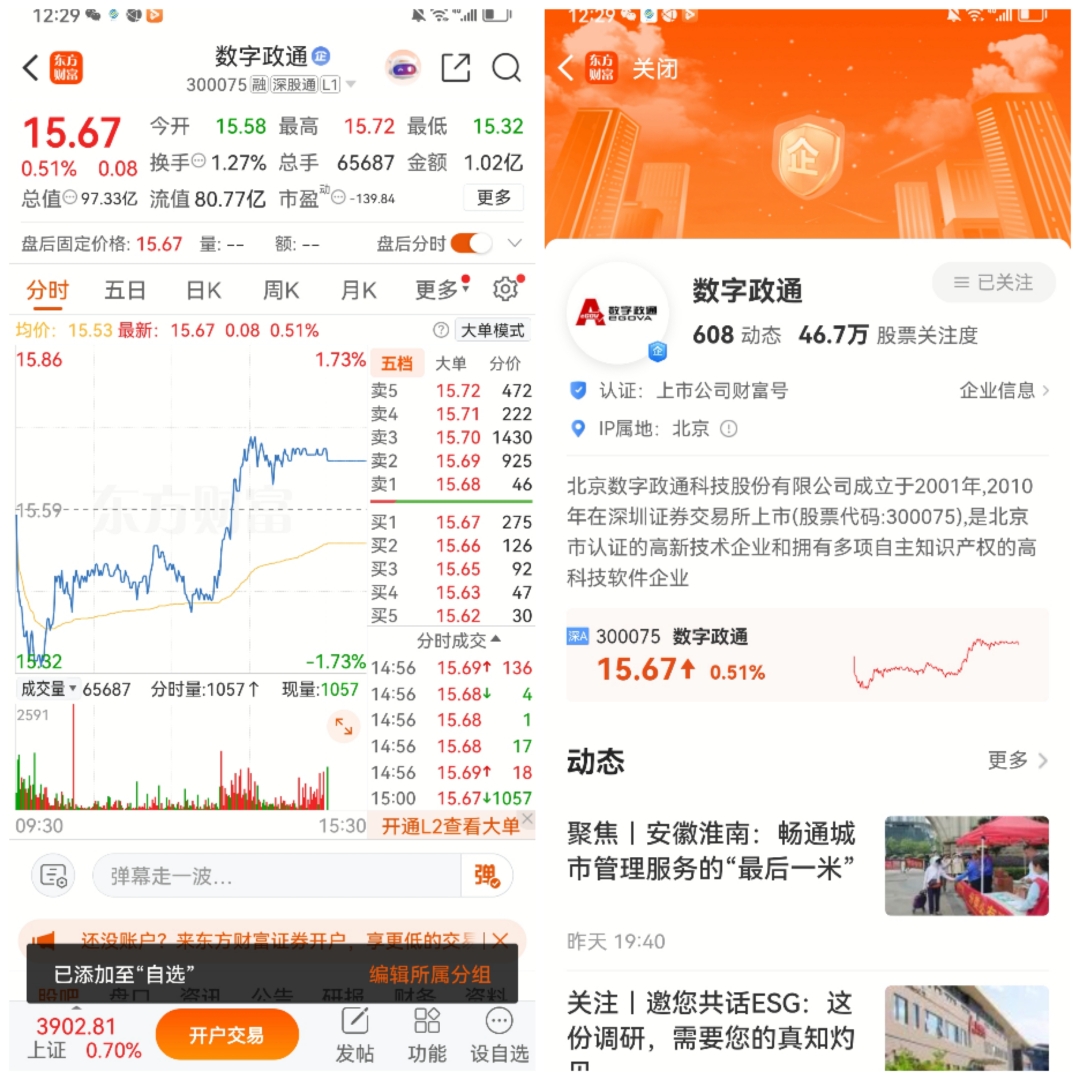 $数字政通(SZ300075)$ @股吧话题 @东方财富创作小助手 @数字政通