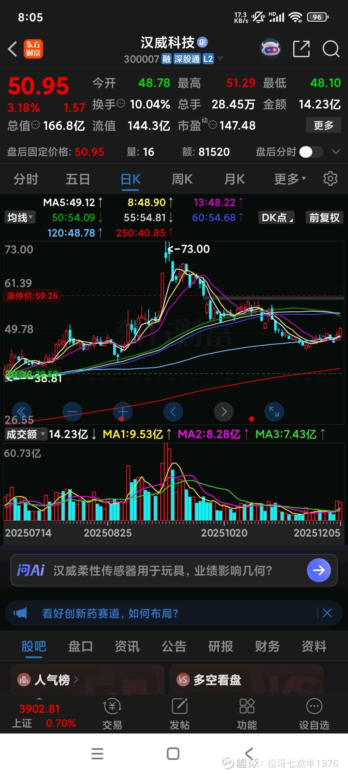汉威科技这份三季报,像极了一杯刚开罐的气泡水:第一口——“营收增速不到3%?好平淡”;第二口——“柔性电子皮肤订单翻倍?有点刺激”;第三口——“华为+比亚迪双巨头加持?气泡开始冲鼻”!但记住,气泡水再好喝,也别一口气灌到底:估值太高会打嗝,技术跳票会呛喉,客户年降会反酸。最舒服的姿势是——拿稳杯子,让气泡慢慢升,等订单落地、良率爬坡、利润兑现,再一口闷下那层“科技泡沫”,享受从舌尖到胃底的爽感。毕竟,在A股能把“气体、压力、柔性、惯性”四大传感器玩到“全科状元”,还能让华为、比亚迪、美的、海尔同时排队买单的,目前看也就汉威一家。短期财报只是“温度计”,长期赛道才是“造氧机”——气泡水能不能升级为“香槟”,时间会给你答案。