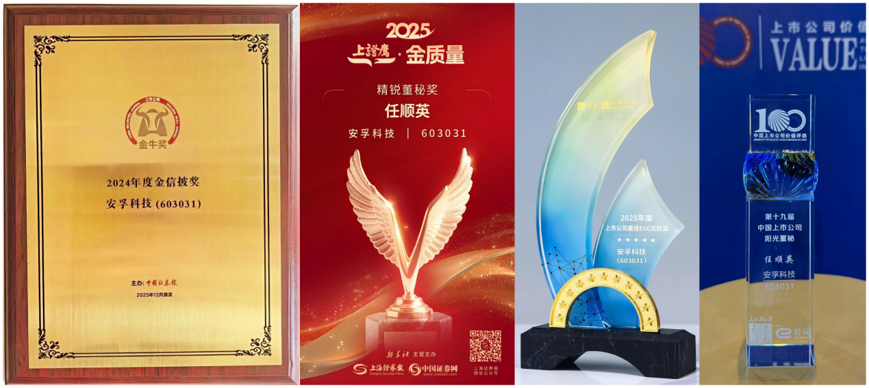 近日,安孚科技(股票代码:603031)凭借在信息披露、可持续发展与公司治理领域的卓越表现,斩获多项权威荣誉。公司先后荣获中国证券报“上市公司金牛奖(金信披奖)”、价值在线“2025年度上市公司最佳ESG实践奖”,公司董事会秘书任顺英先生更是凭借突出工作成果获评上海证券报“精锐董秘奖”和证券时报“阳光董秘奖”。多项荣誉叠加,既是资本市场对公司转型发展成效的高度认可,也彰显了公司在治理规范、可持续发展等方面的行业标杆地位。