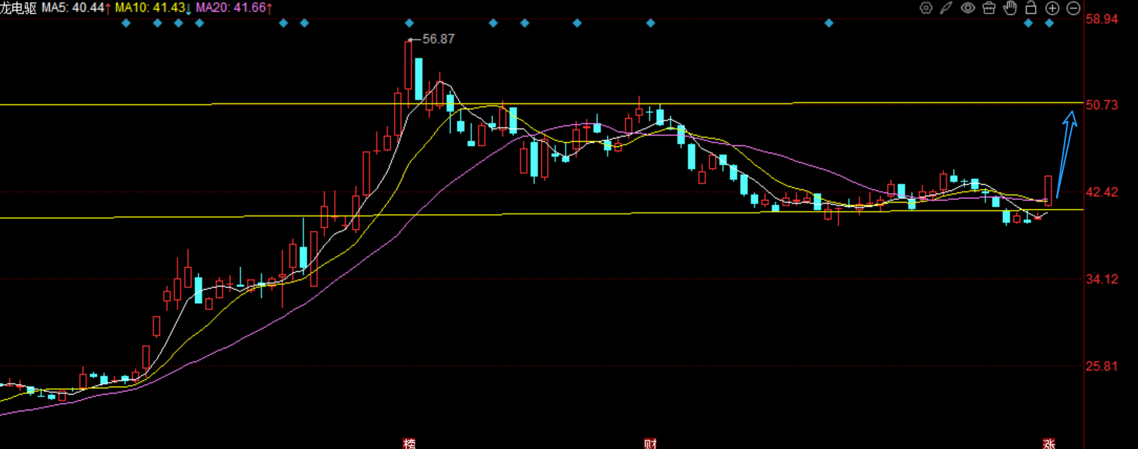 人气之王回来了,卧龙电驱,机器人板块,周末比较热门的演唱会上,6台机器人为明星伴舞,灵活性以及动作难度令人印象深刻,甚至还获得了马斯克的认可,该机器人就是宇树科技提供。机器人板块也是许久未动了,今天直接带动反弹,核心就是卧龙电驱了,公司间接持股宇树机器人和智元,且为宇树提供无框力矩电机系统,调整了快半年了,这次在40的整数关口企稳反弹,首板量能直接来到70亿,市场合力太强,明天还有继续冲高,接下来主要看市场主线的切换,如果前期题材H天板块要退潮,那紫金回流机器人,卧龙还能大涨,如果旧题材继续走强,那卧龙则横盘震荡为主,所以持股上可以逢高减仓,然后再等卧龙回调时吸筹,这次40的支撑位确认,这里就是底部。