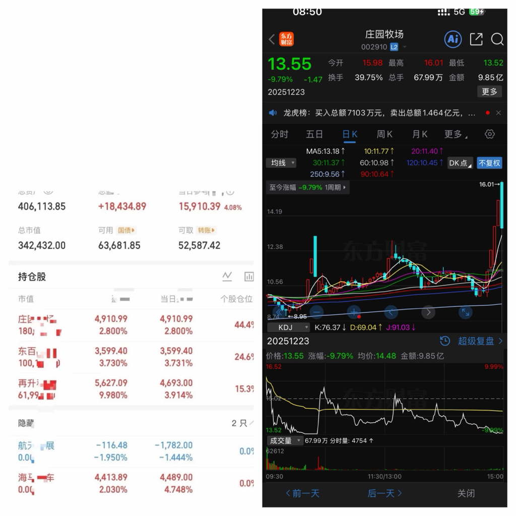 昨天上午大曾子很得瑟一度浮盈6%,又飘飘然和顶级陈见顶相提并论。上午一度地板上接的庄园牧场,想博一个地天板20%,谁知道尾盘又被核下去了。有的时候你不要看他一天可以赚多少个点,大部分都是盘中富贵,半场开香槟。大部分时间利润还没捂热下午就被闷下去了。你们只看见贼吃肉不看见贼挨打。