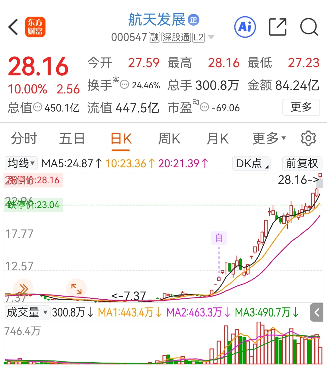 航天发展:商业航天真龙,最近还有神剑通宇,都是柚子互相接力也是主线,今天是一个缩量换手板加速,没得说,强者恒强,长期看涨,短期回调上车