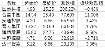 目前来看,国晟合富已经大涨一波了,国晟更是翻倍,行情继续的难度大,剩下五个应该会有更好的表现。