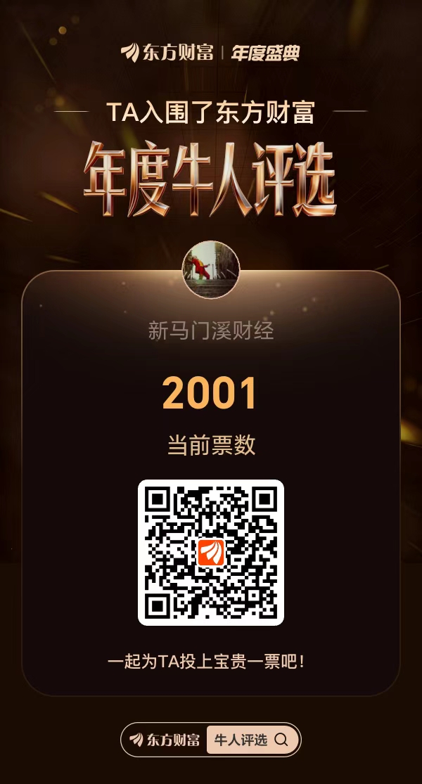 最后,还是给我老马拉拉选票,本人有幸参与了东财举办的年度牛人评选活动,目前已经来到了前5,不知道这两天在大家的助力之下能不能冲击下前3呢?![上涨 [上涨]](http://gbfek.dfcfw.com/face/emot_default_28x28/emot78.png)