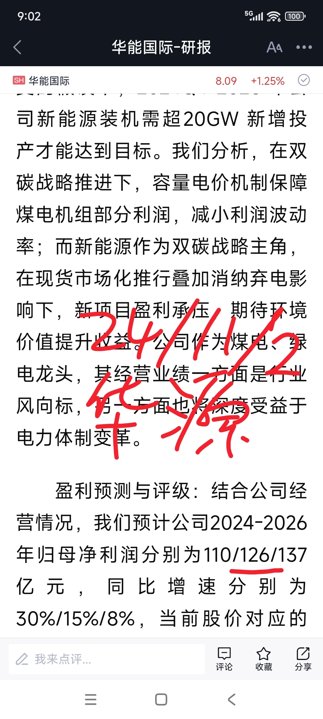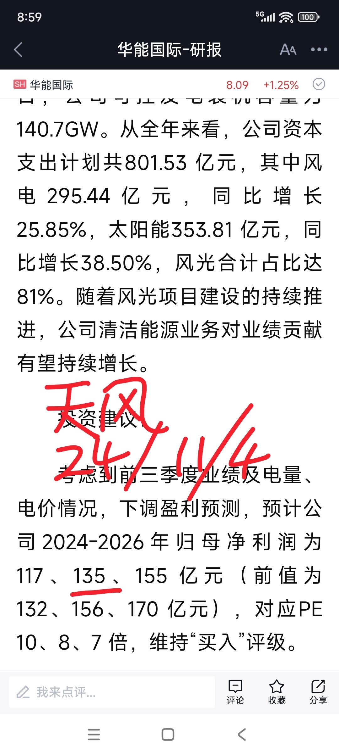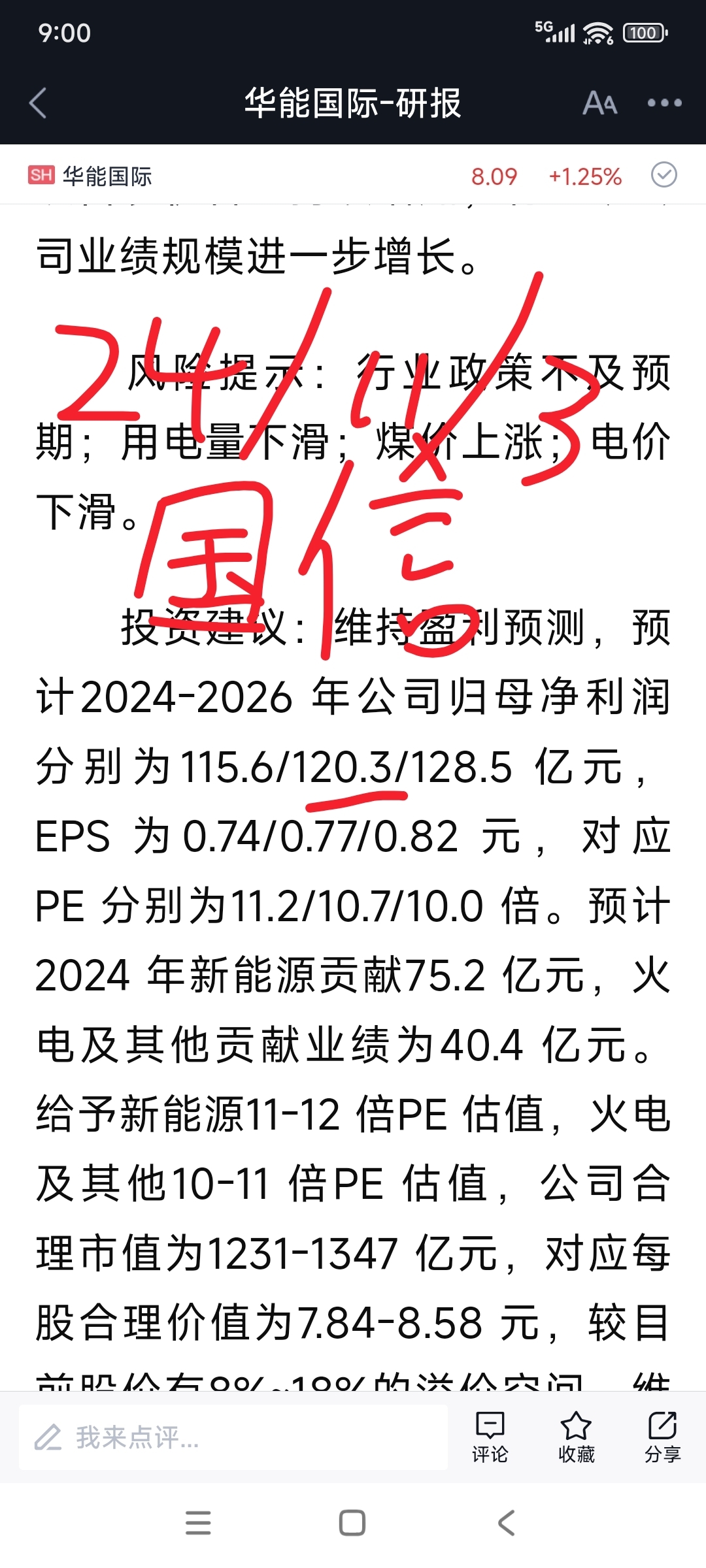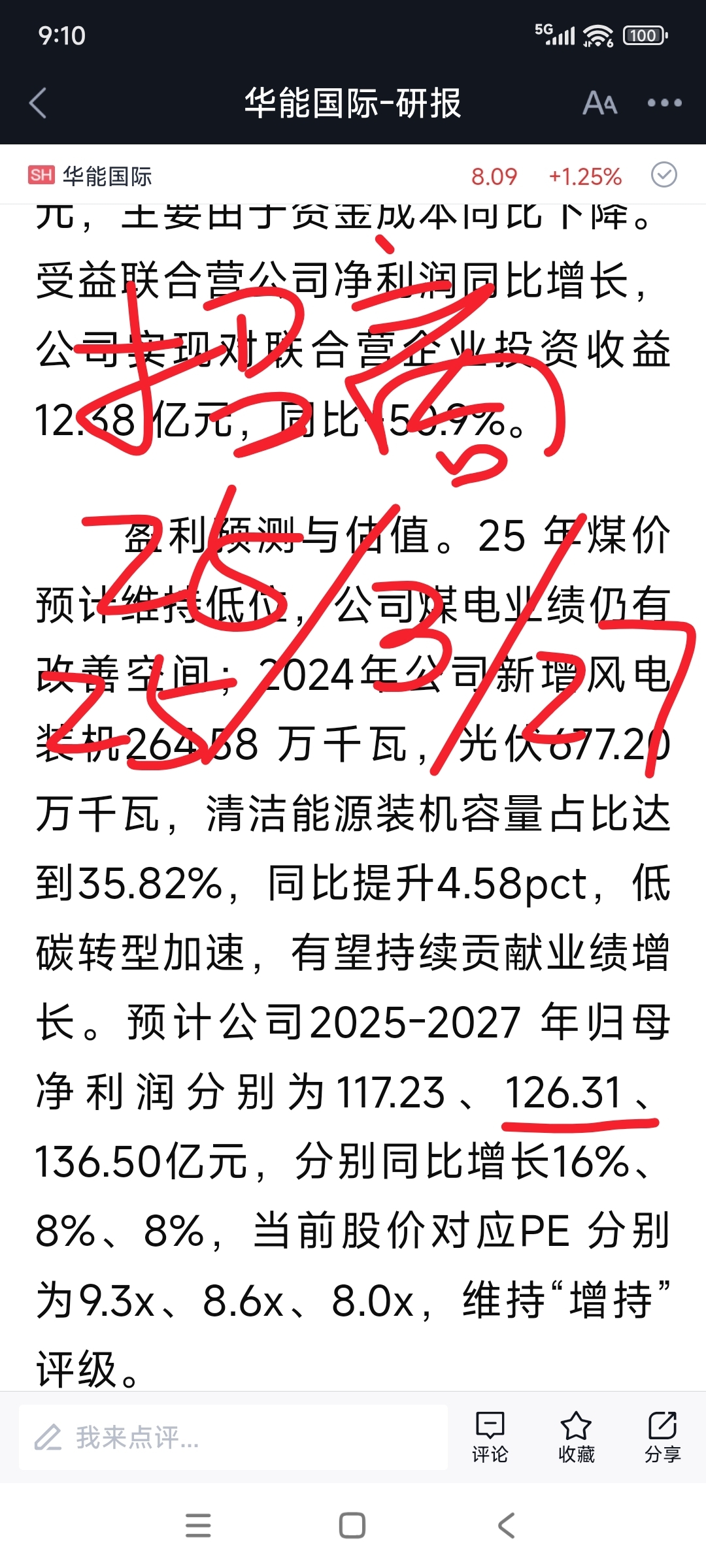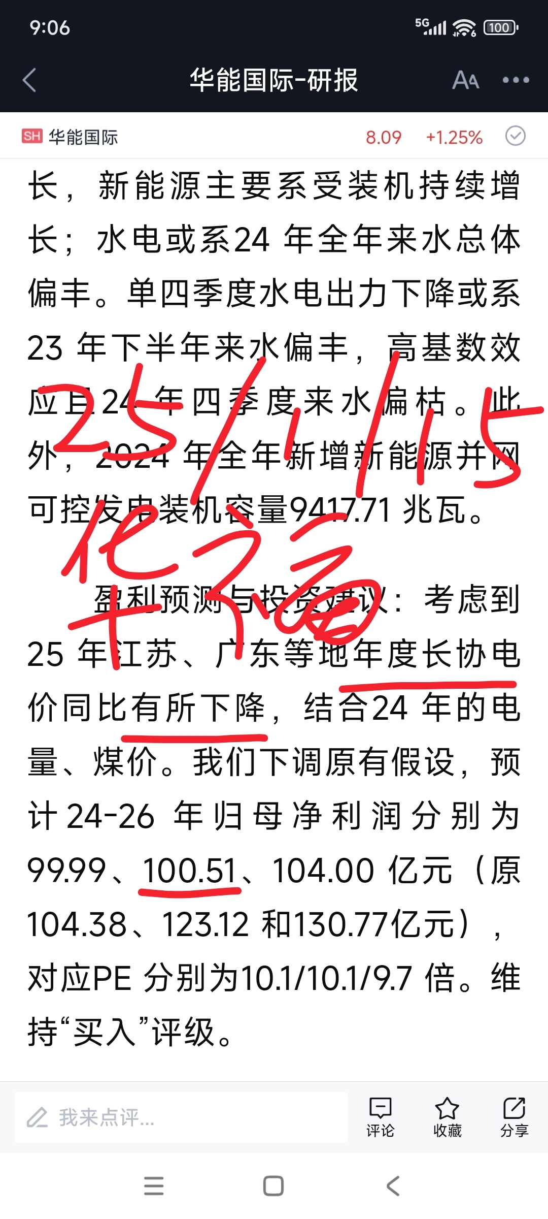 去年10月后,作者加仓了华能国际,同时期,一些从业机构预测华能国际25年度的净利。