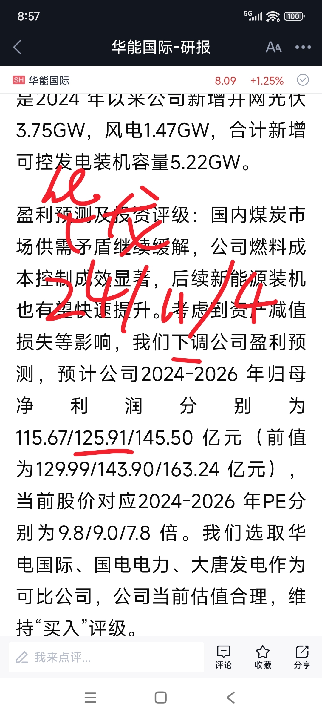 长协电价出来后,机构预测华能25年度的净利值偏差更大,水平更糟。