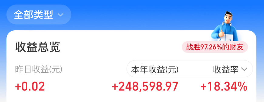 整体做到收益稳中有进,跑赢通胀、跑赢存款、跑赢银行理财,我觉得就很好了,这是投资的初衷,不忘初心,复利增长。