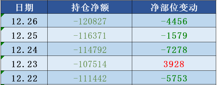 1)上个交易日,共计增加4456手空单(明细看上方表格)。