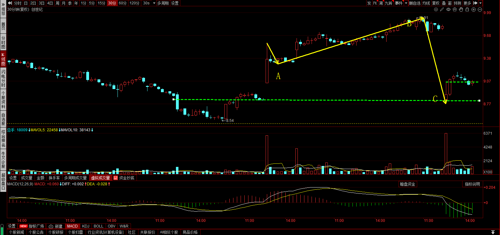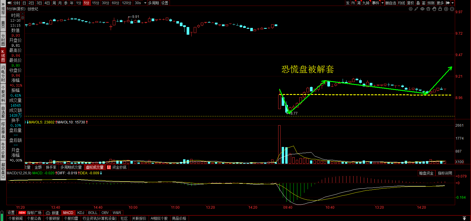 5分K上,成交量的高点被突破。