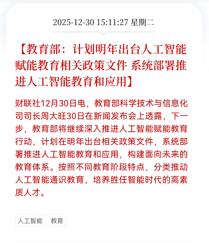 教育部重磅部署:2025年起全面推进人工智能赋能教育教学变革,以国家政策驱动AI与教育深度融合新阶段正式开启!