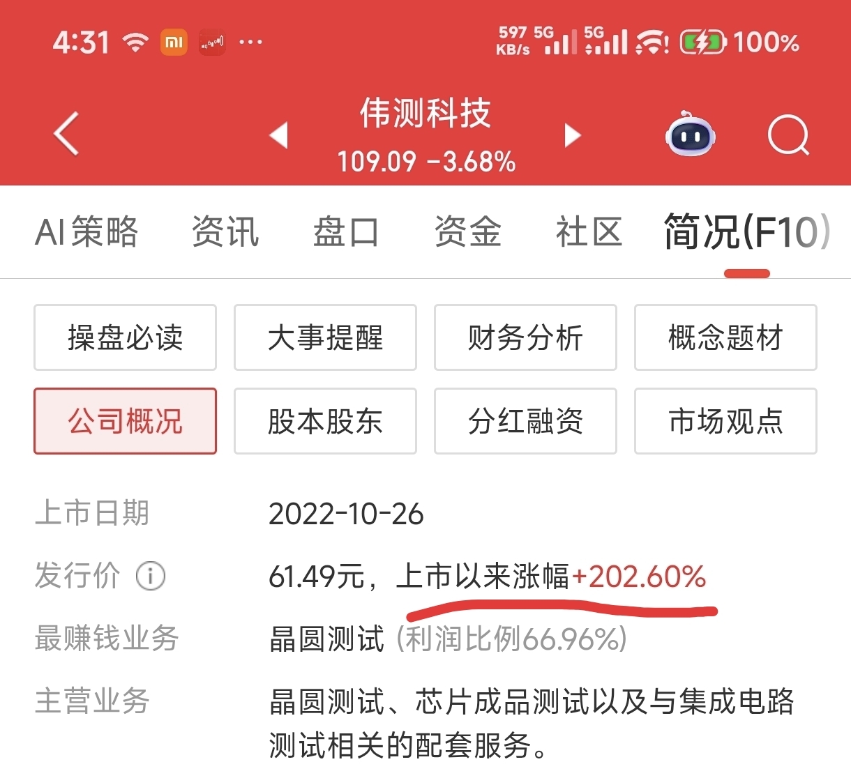 截止今日,伟测科技上市以来的涨幅只有两倍,这也从另外一个解度角度解释了为什么伟测科技大股东目前并不急于减持: