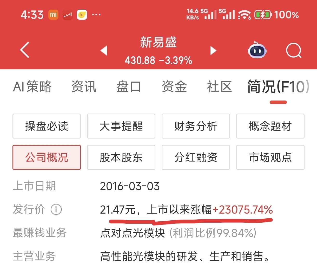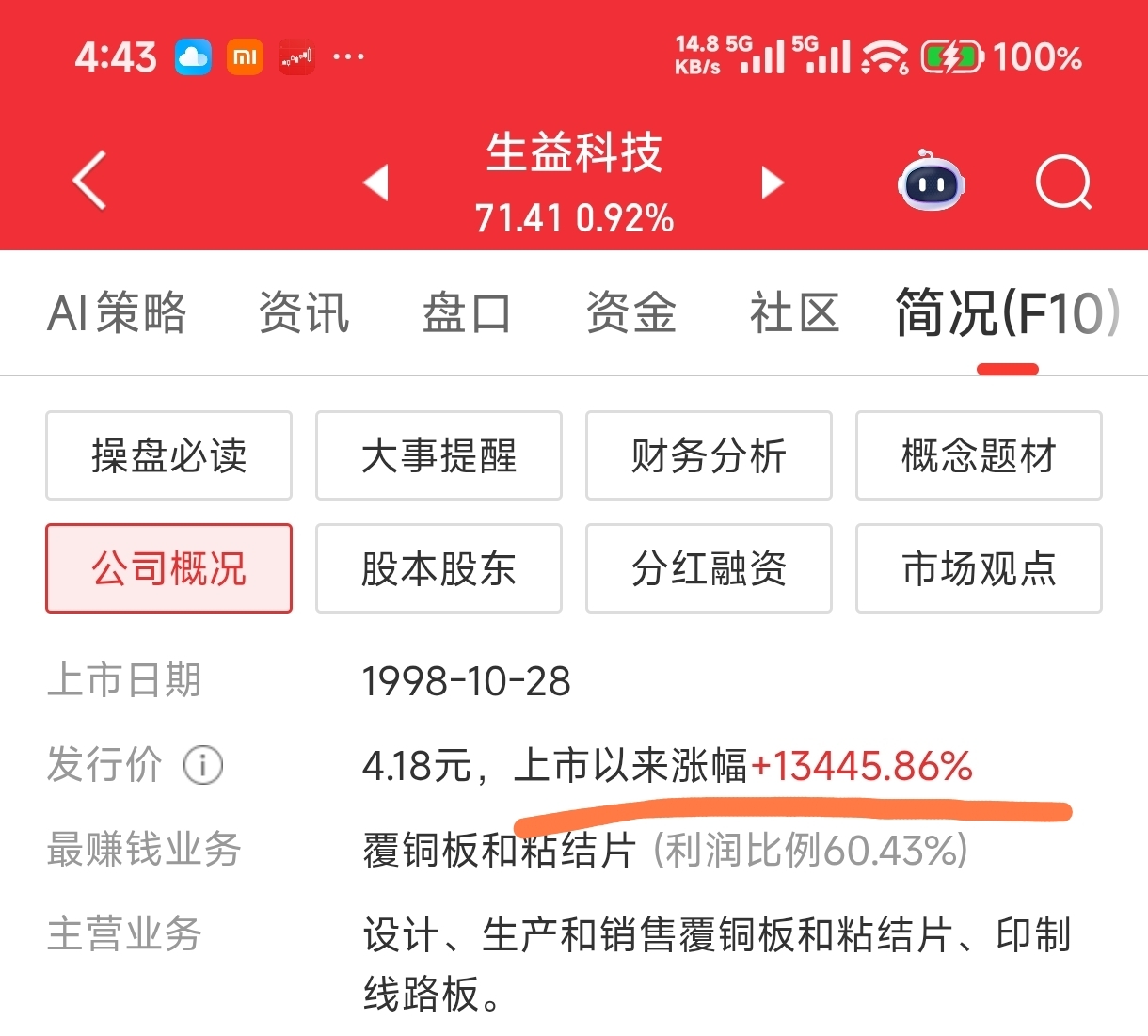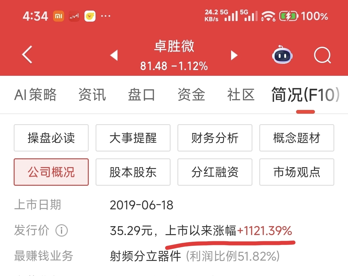 下面我发十几张截图,分别是A股的一些上市公司上市以来的涨幅(截至今日收盘),大家看到它们的巨大涨幅(从几倍到几十倍到几百倍)之后就会明白,为什么有投资价值的股票不能“炒”,只能“捂”。
