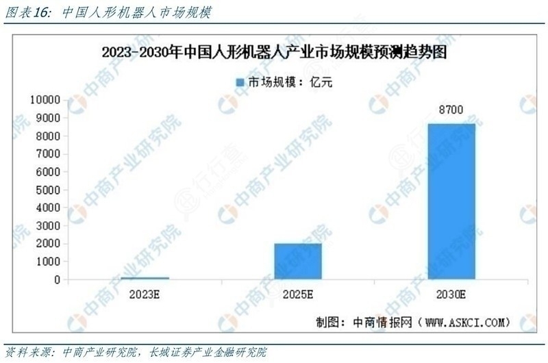 长远来看,人形机器人未来的潜在市场空间巨大,或催生万亿蓝海应用市场。比如在家庭服务领域,就算只有5%的家庭使用,仅国内市场的价值就达到了千亿级别。而我国基于产业链上的一些优势,未来在人工智能领域可能迎来重大机遇。比如,在新能源汽车领域,我们已经积累了成功经验,在智能驾驶、软硬件整合、产业链优化、车型更新换代方面拥有相当明显的优势。同时,国内供应链企业在客户响应速度、产品更新、降低成本等方面也具备类似优势(例如电机、电池等)。国产传感器、精密减速器、滚珠丝杠和中空电机的比例也将会提高。