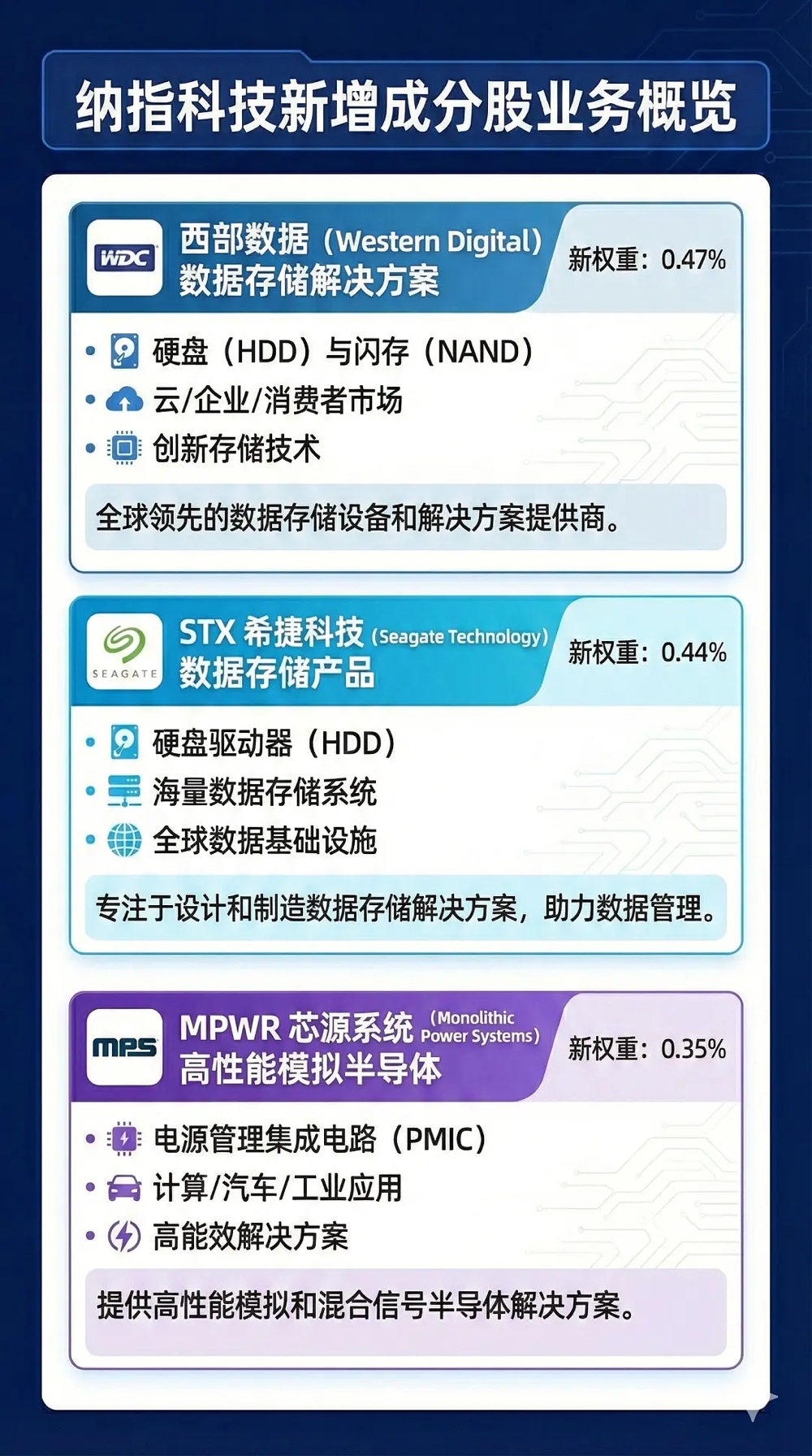 WDC (Western Digital):新权重 0.47%(直接排到第30名)