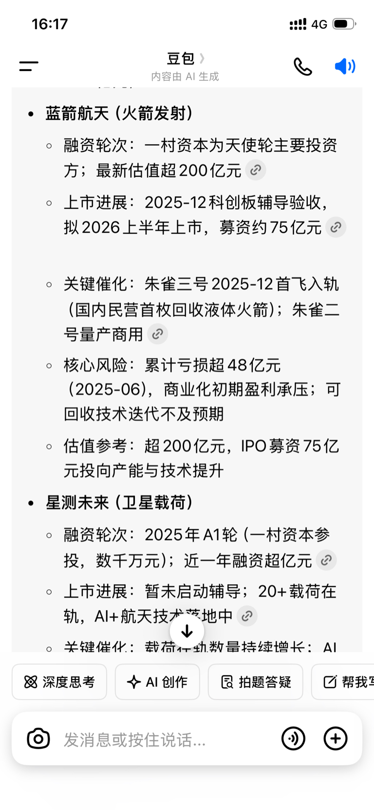 • 风险共性:商业航天普遍研发投入高、盈利周期长、技术迭代快,需重点跟踪发射/回收成功率、订单落地与现金流状况