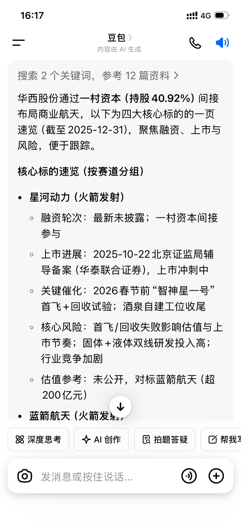 华西股份通过一村资本(持股40.92%) 间接布局商业航天,以下为四大核心标的的一页速览(截至2025-12-31),聚焦融资、上市与风险,便于跟踪。