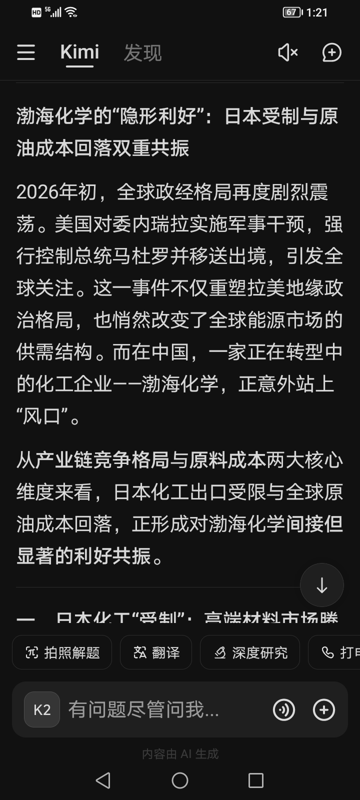 渤海化学的“隐形利好”:日本两用物资受制与原油成本回落双重利好共振