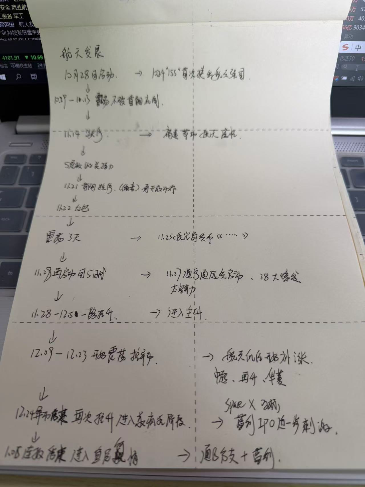 今天上午梳理了航天发展从启动到现在鱼尾的一整段,时间线+事件。也基本能套用到整个情绪大周期里面来。