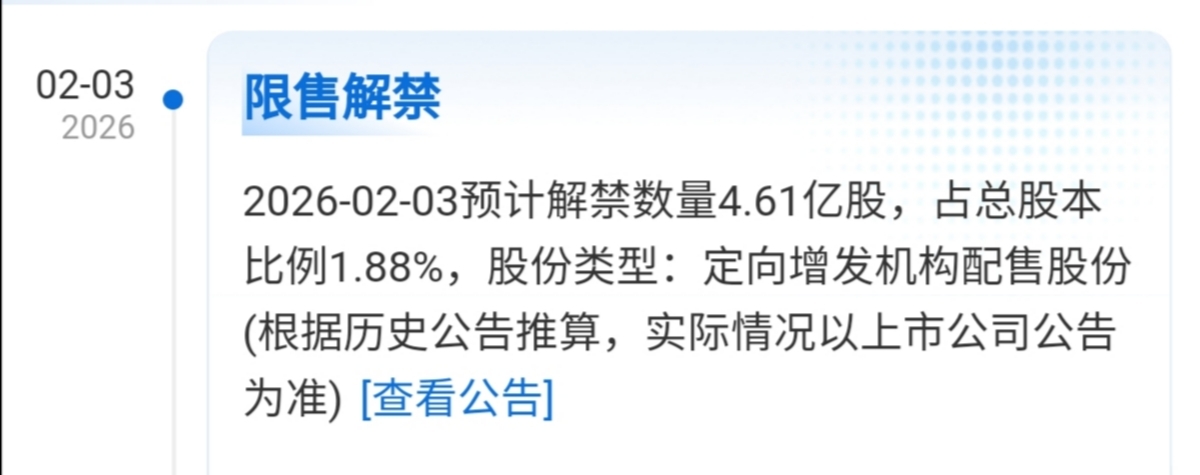 2026年2月解禁的4.61亿股是三峡集团所持股份,作为控股长江电力的集团公司,更不可能在解禁后减持。