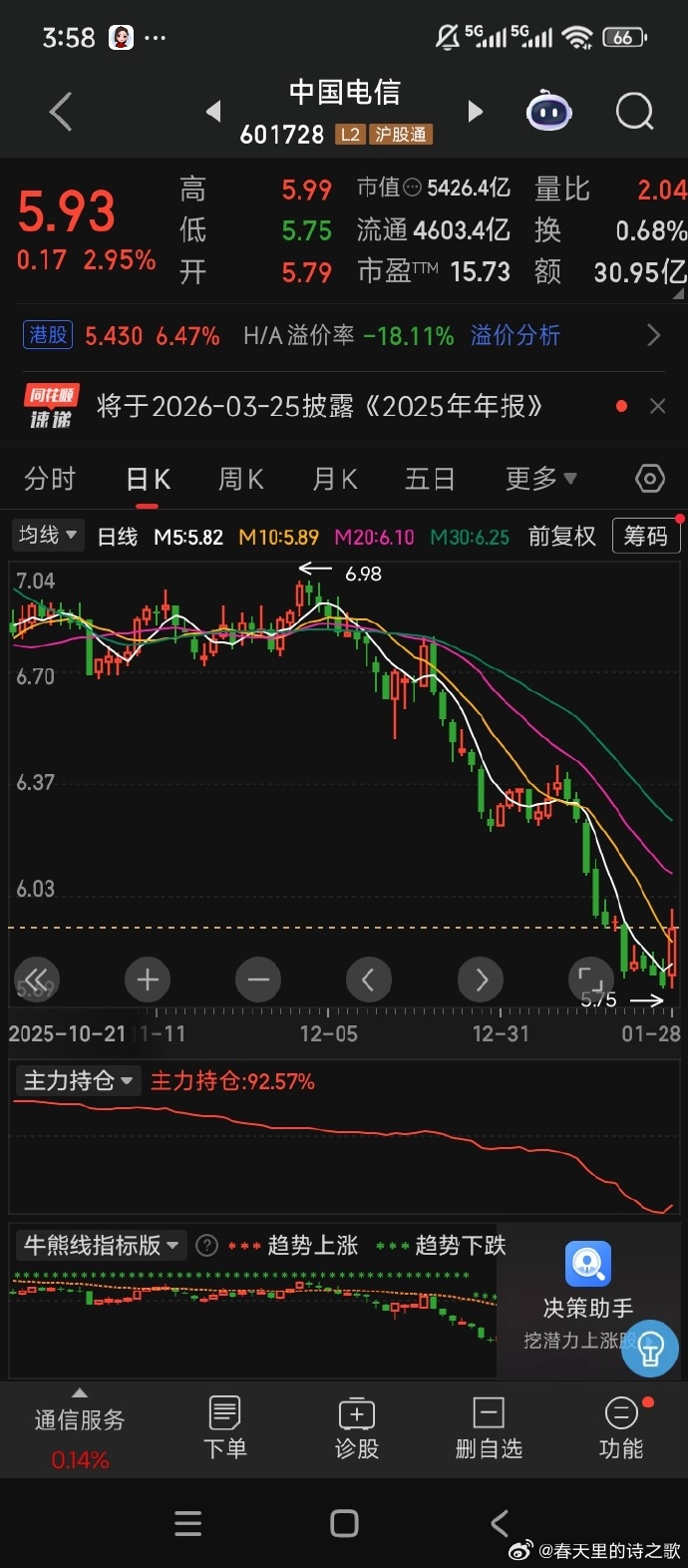 展望2026年及以后,中国电信的股价走势将围绕“高股息防守”与“算力增长”的核心博弈展开,整体大概率呈现低位震荡、寻求支撑、缓慢修复的态势,不同阶段的核心支撑与驱动因素各有不同。
