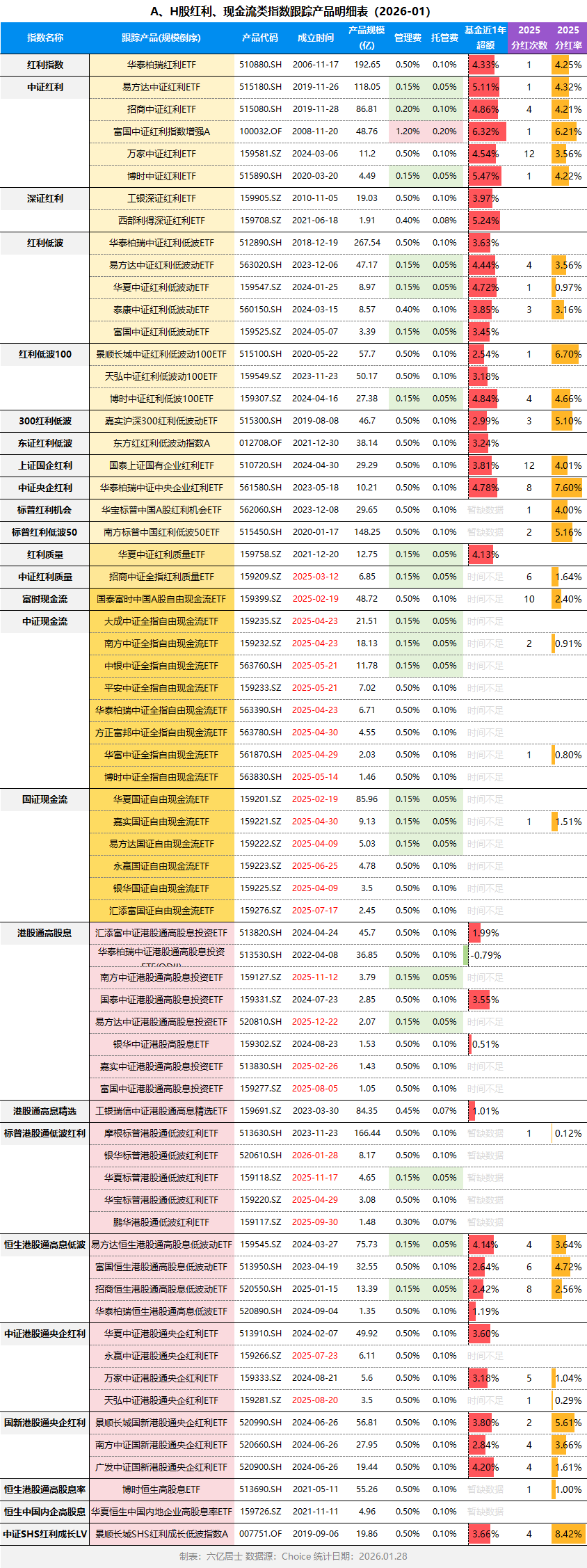 02 A、H股红利、现金流类指数跟踪产品明细表